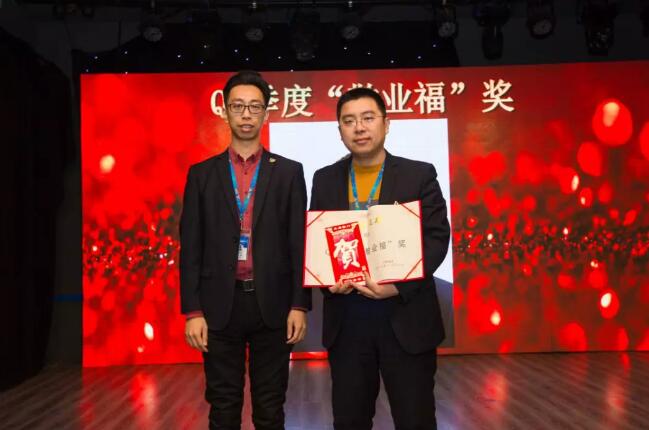 工会主席吴江为Q3季度开拓先锋奖获得者颁奖