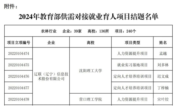 克日,教育部高校学生司下发《关于宣布2024年教育部供需对接就业育人项目结题验收的通知》(教就业司函〔2024〕22号),亿万28信息与沈阳理工大学、营口理工大学等高校就业育人项目经审核,5个项目乐成通过结题验收。入选《2024年教育部供需对接就业育人项目结题验收》,充分体现了亿万28信息恒久以来始终增进产教融合、重视校企相助、注重人才作育事情的起劲效果。